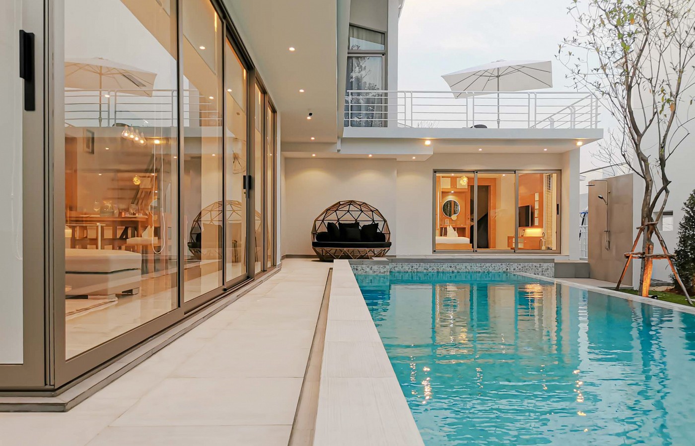 Property Features: Gorgeous Balinese-style villa on large plot Thai Freehold 5 bedrooms and 5 bathrooms (4 ensuite) Master bedroom with study and outdoor shower High vaulted ceiling in master bedroom and living area Open-plan living and dining area Fully-equipped western kitchen Service kitchen Private swimming pool with attached Jacuzzi Spacious pool terrace Poolside Sala Garden pavilion with bar and outdoor dining table Large garden Covered car port Maids’ quarters Utility/laundry room Storage Gated community 24-hour security